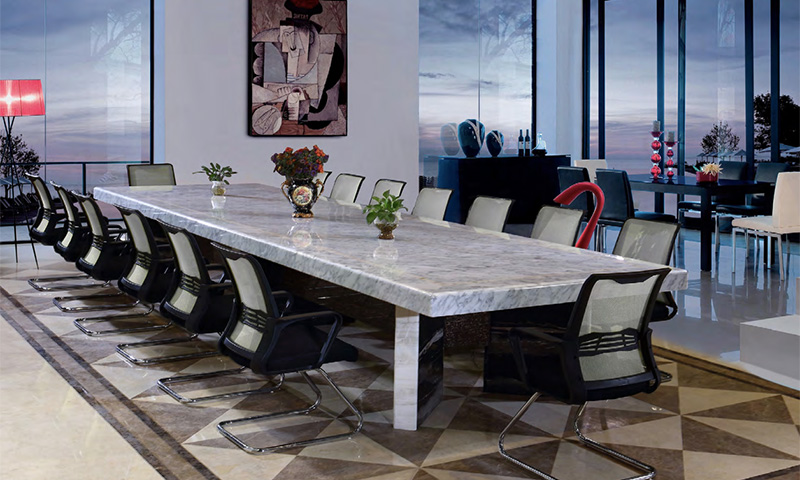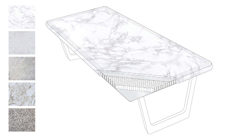 A resistência aumentada pela estrutura alveolar torna possível fazer uma grande mesa de mármore com um comprimento máximo de 6 m e largura de 2 m.